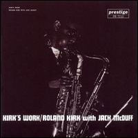 Kirk's Work — Rahsaan Roland Kirk's third long-player — teams him up with organist "Brother" Jack McDuff for Kirk's most soulful post-bop set to date. His unorthodox performance style incorporates the polyphonies of a tenor sax, flute, manzello, and stritch. The latter instrument is Kirk's own modification of a second-generation B-flat soprano sax. This contributes to the unique sonic textures and overtones Kirk creates when playing two — and often three — of those lead instruments simultaneously. The loose and soulful nature of McDuff's Hammond organ lends itself to the swinging R&B vibe pervasive throughout the album. Completing the quartet is Joe Benjamin (bass) and Art Taylor (drums) — both veteran jazzmen in their own right. They lend their expertise as well as innate sense of rhythm to the up-tempo "revival meetin'" rendition of Sammy Kahn's "Makin' Whoopee" as well as the ominous swing of the title track. This is also an ideal showcase for Benjamin and Taylor's running counterpoint that glides throughout — supporting soloists Kirk and McDuff. Of the four original Kirk compositions, "Doin' the Sixty-Eight" is arguably the strongest. The percussive rhythms weave a hypnotic Latin groove over which Kirk and McDuff both snake some highly cerebral solos. The stellar interpretation of "Skater's Waltz" combines a well-known traditional melody with some of the most aggressive interaction from the quartet. The tune is put through its paces and the tenor sax/Hammond organ leads bounce around like a game of sonic ping pong. The more aggressive performance style that Kirk would later incorporate definitely shows signs of development on Kirk's Work. While certainly not the best in his catalog, it is a touchstone album that captures the early soulful Rahsaan Roland Kirk.