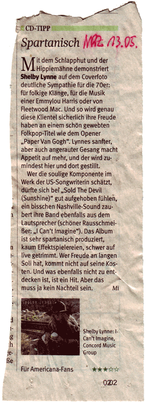 Ihr bestes Album seit "I Am Shelby"? Keine Ahnung! Zum einen bin ich mir nicht sicher, ob "I Am Shelby" jetzt wirklich das Meisterwerk der Lady ist, denn ich finde auch einige andere ihrer Alben richtig gut (z.B. "Identy Crisis" von 2003, "Suit Yourself" von 2005 und die Dusty Springfield-Hommage "Just A Little Lovin'" von 2008 ).