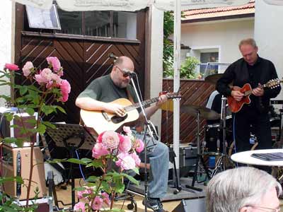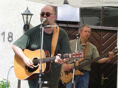 Als wenige Tage vor dem Konzert Petras Absage kam, spielten wir ganz kurz mit dem Gedanken, das ganze Konzert abzusagen. Die Erinnerungen an unsere letzten Auftritte zu viert in Plauen waren nicht die allerbesten: es geht zwar irgendwie, aber es fehlt mit der zweiten Gesangsstimme doch etwas Essentielles in unserer Musik. Natürlich haben wir uns dann trotzdem zu viert nach Borken aufgemacht und dort mit dem Publikum einen wunderbaren Tag verlebt. Unser Dank geht vor allem an den Moderator der Veranstaltungsreihe "Konzert im Kleinen Hook", Robert Kemper, sowie den Fotographen Thomas Eickhoff. |