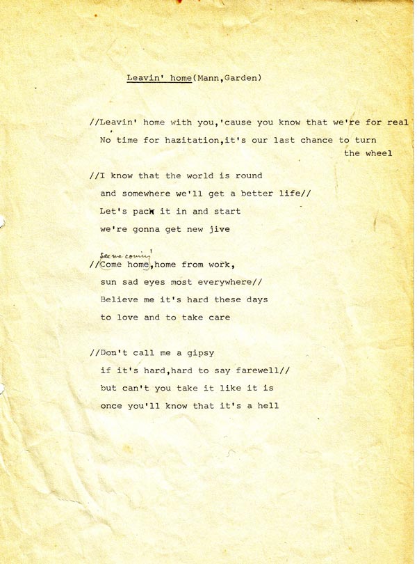 Der Text stammt noch vom ersten Rusty-Nails-Sänger Werner, die Musik von Micha. Eigentlich ist das ein ziemlich konventioneller Moll-Blues über das Fernweh aus unseren frühen Tagen. Bald darauf machte Werner ernst und verschwand tatsächlich für einige Monate nach Australien.